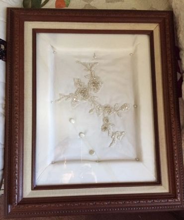Still have your wedding dress packed away? Why not recycle it. These are examples of what we can make from it. Have you been collecting those Crown Royal bags? Look at the slideshow and see what we can do with those. Baby bunting made from Grandma's nightgown. You just use your imagination for something you want made and we'll find a way to make it happen.